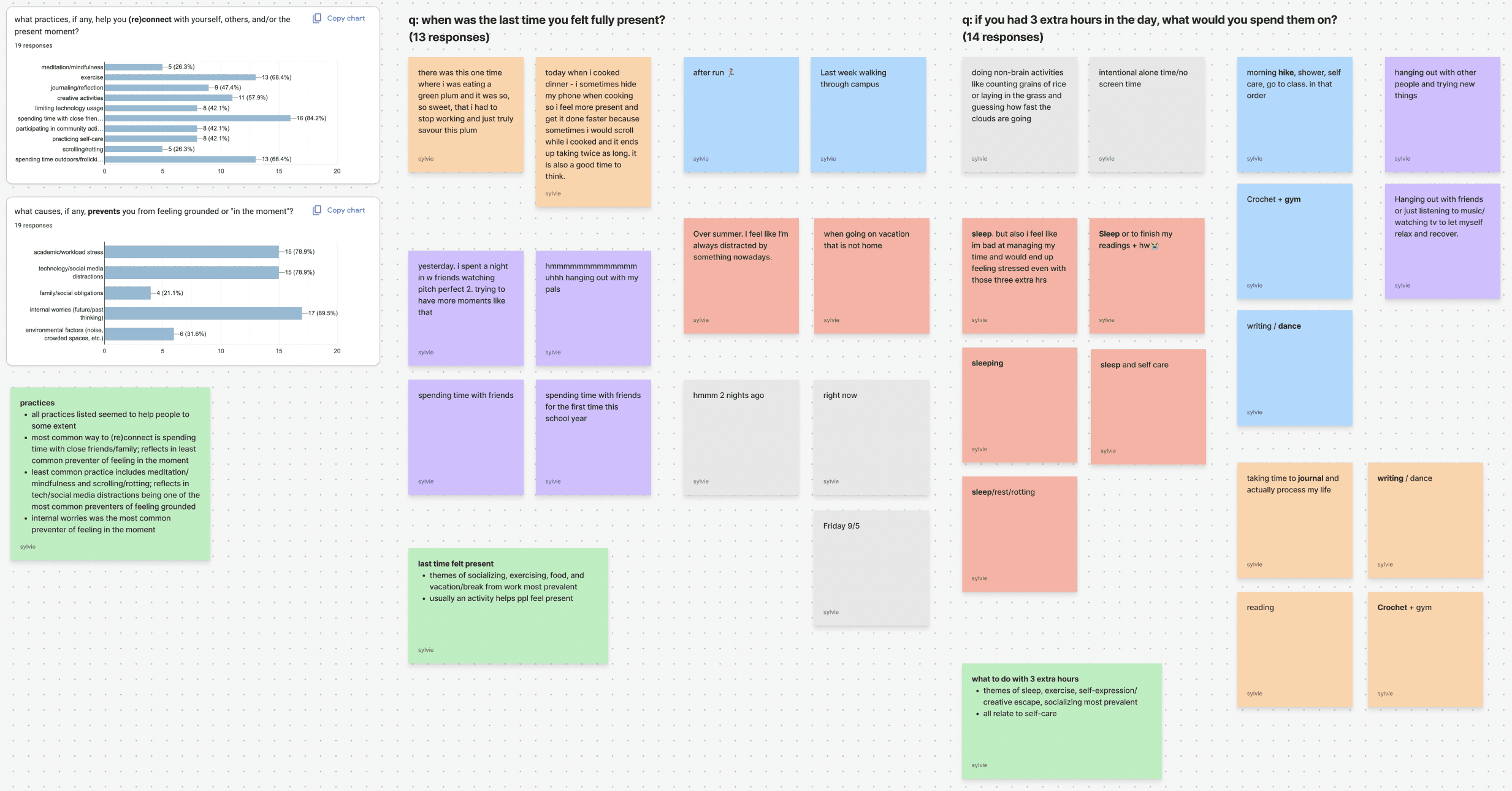 With the research goal of learning about individuals’ practices & attitudes related to being present in their daily lives, I conducted a user survey via Google Forms towards a target audience of young adults in and out of school.